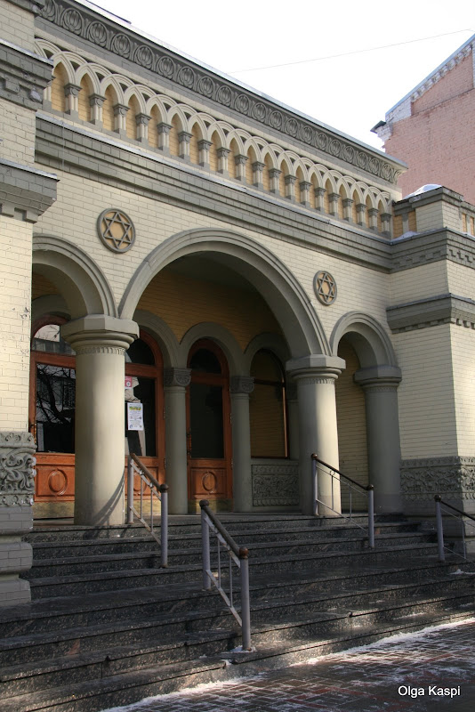 ![]() А куда без них? Да вся история Киева неотделима от истории еврейской общины. Благодаря еврейским меценатам на карте Киева появились Бессарабский рынок, корпуса Киевской Политехники, здание, в котором сейчас располагается Областная больница, и ныне действующая синагога на Щекавицкой, и молитвенные дома на Нижнем валу, на Ярославской, на Межигорской и первая Талмуд-Тора (еврейская религиозная школа) на Константиновской и множество других зданий, нынешние владельцы которых даже не подозревают об их первоначальном предназначении. Объекты, возводившиеся на деньги еврейских меценатов, стали своеобразными памятниками тем, кто навсегда вписал свои имена в историю Города (так, вместо названия Киев, в своих произведениях называл свой родной город автор "Мастер и Маргариты). В Киеве родились будущие политические лидеры Израиля - Голда Меир и Ефраим Кацир.В Киеве жил и работал писатель Шолом-Алейхем, учился Исаак Бабель, родился Илья Эренбург, жил О.Мандельштам. Итак, предлагаю совершить виртуальную прогулку по еврейским адресам Киева. Начинаю с центральной синагоги, что на ул. Шота Руставели, 13. Стоит она на пересечении шумных улиц с активным движением, от чего даже не сразу заметна. ![]() В то время правительство не разрешало киевским евреям возводить монументальные культовые постройки, можно было лишь приспосабливать под молельни готовые здания. Общепринятых требований к архитектуре синагог нет. Неизменно только требование к местоположению синагоги, ее ориентации на Иерусалим. Тогда архитектор Георгий Шлейфер, дабы утвердить свой проект в администрации города, спроектировал здание таким образом, чтобы с одной стороны оно напоминало жилой дом. Он выдал за главный фасад боковой, благодаря этой хитрости, проект был утвержден без проволочек. ![]() Но с другой стороны, стороны входа, уже видна вся атрибутика. Она построена в 1898 году известным киевским сахарным магнатом Лазарем Бродским, которого еще называли "сахарный король". ![]() Здание было конфисковано советской властью в 1926 году, и только в 1997 снова передано еврейской общине Киева. ![]() ![]() Недалеко от синагоги находится памятник Шолом-Алейхему — еврейскому писателю, ставшему одним из основоположников литературы на языке идиш, в том числе детской. Буквально через дом от центральной синагоги, расположена вторая синагога, еще она называлась Купеческая, из названия можно понять, что была построена на средства еврейских торговцев и купцов. В то время, если в первую посещали купцы первой гильдии, то во вторую ходили купцы гильдии второй. Сейчас в ней располагается кинотеатр Кинопанорама, но еврейская община ведет переговоры о возврате ей этой синагоги. На мой вопрос, а кто же будет ходить в эту синагогу, исторически предназначенной для купцов второй гильдии, когда рядом есть для первой. Всеж хотят быть первыми :-) В ответ услышала анекдот, о еврее, который попал на необитаемый остров и построил там три синагоги. Когда его наконец нашли и спросили зачем ему три синагоги, он ответил: "В одной синагоге я молюсь в будни, во второй в субботы и праздники, а в третью я ни ногой!" По аналогии с анекдотом, в центральную синагогу я бы ходила по будням, в вот для шабата и праздников выбирала бы синагогу на Щекавицкой улице. Считается, что если есть выбор, в какую из синагог пойти, более похвально пойти в ту