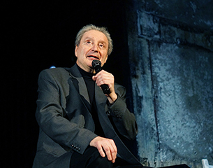 Вы прошли путь от Маяковского-циника, как значилось в программке к спектаклю «Послушайте!», до Маяковского-меланхолика в спектакле «Флейта-позвоночник», который недавно появился в репертуаре Театра на Таганке…– А моего самого лучшего «Маяковского» – программу на телевидении «День Маяковского» (утро, день, вечер и бессмертие) – даже запретили! В 2015 году в Италии издали книгу «Клоп» с иллюстрациями Франко Стоино, который, не зная ни одного слова по-русски, пользовался русским шрифтом как орнаментом, как Илья Зданевич: можно просто прочитать, а можно полюбоваться. Жена моя Галя заразила меня идеей новой композиции, чтобы в день презентации издания сыграть в Риме спектакль, посвященный Маяковскому. Мне понравилось, как после премьеры «Флейты» премудрый, талантливый, близкий мне по Театру на Таганке актер и режиссер Александр Михайлович Вилькин, который участвовал в трех моих телевизионных спектаклях, сказал, что «Флейта-позвоночник» как будто реабилитирует замечательный жанр литературного салона, существовавший в Серебряном веке и позже, и что он впервые увидел Маяковского-интеллигента.
