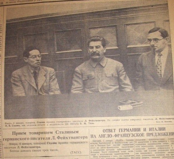 В 1936 году в СССР сочинили эпиграмму в честь приезда немецкого писателя Лиона Фейхтвангера: «Умный немецкий еврей стоит у советских дверей, но я не прельщусь его видом, а вдруг он окажется Жидом». Имелся в виду французский писатель Андре Жид, в будущем лауреат Нобелевской премии по литературе, симпатизировавший идеям социализма, посетивший СССР и выпустивший в конце 1936 года книгу «Возвращение из СССР», в которой критиковал отсутствие свободы мысли, жесткий контроль в литературе и человеческое перерождение в этой стране. Реакция Сталина была страшной, осуждение Жида было тотальным и в СССР, и в среде левых западных интеллигентов, таких, как Ромэн Роллан и Лион Фейхтвангер. Немецкий писатель рвался в СССР, как и герой его романа «Успех» (1930) коммунист Каспар Прекль, прототипом которого был Бертольд Брехт. И, как Преклю, Лиону Фейхтвангеру удалось осуществить мечту и посетить Советский Союз дважды. Накануне второго визита Фейхтвангера в СССР в декабре 1936 года и под влиянием московской книги Андре Жида родилась упомянутая эпиграмма. Сталин опасался «умного немецкого еврея». В январе 1937 года он больше трех часов «обрабатывал» немецкого писателя во время их встречи в Москве. И диктатору удалось убедить Фейхтвангера в правоте советского строя: