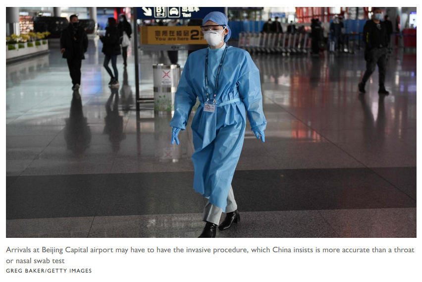 Китайцам понравилось делать анализ на коронавирус через задницу, так что теперь такой анализ обязателен и для всех прибывающих в страну иностранцев - "China makes anal swab Covid tests compulsory for foreign arrivals" (там paywall, однако и по началу статьи все понятно).