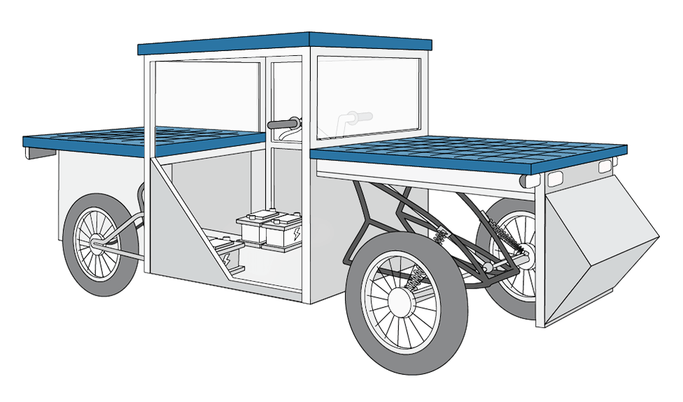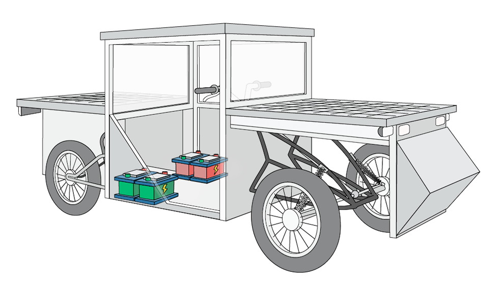 В результате машина, способная перевозить троих человек, весит всего чуть более 200 килограммов. Когда машина едет, она использует заряд одной батареи, заряжая вторую. Но общий заряд расходуется быстрее, чем восполняется – при максимально экономичном режиме в 40 километров в час машина на двух аккумуляторах проходит 140 километров.