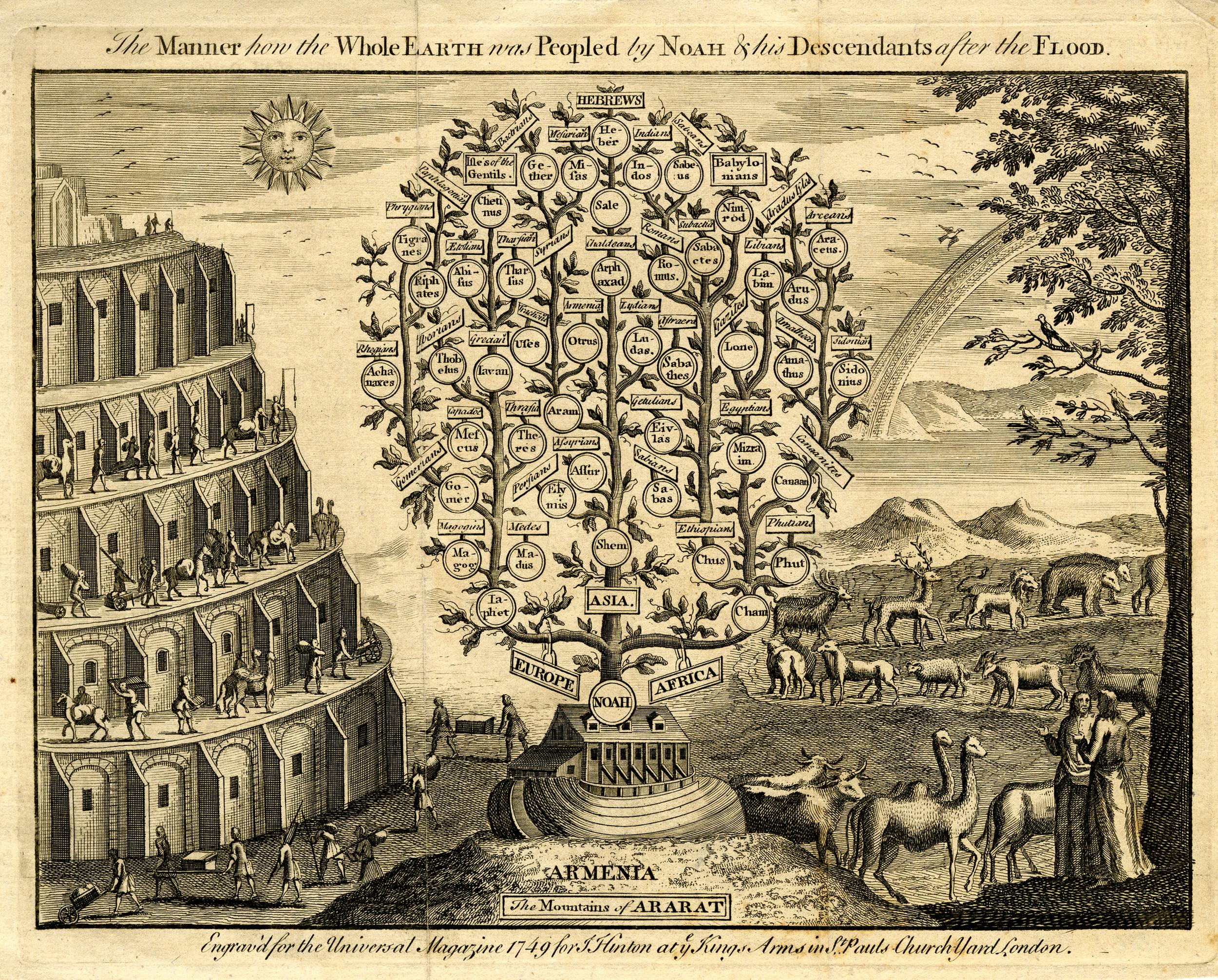 ЗАСЕЛЕНИЕ ЗЕМЛИ ПОСЛЕ ПОТОПА. ГРАВЮРА. ДЛЯ UNIVERSAL MAGAZINE. 1749. BRITISH MUSEUMФОТО: ВИКИПЕДИЯ