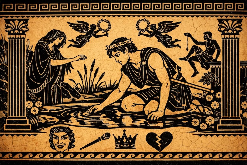 Нарцисс был персонаж из греческой мифологии, безгранично влюблённый в самого себя и потому отвергший любовь нимфы Эхо. От этого персонажа и пошло в психиатрии определение психотипа: «нарциссизм – расстройство личности, характеризующееся преувеличенным чувством собственной значимости, потребностью в восхищении, жаждой власти, заносчивостью и отсутствием эмпатии к другим людям.»