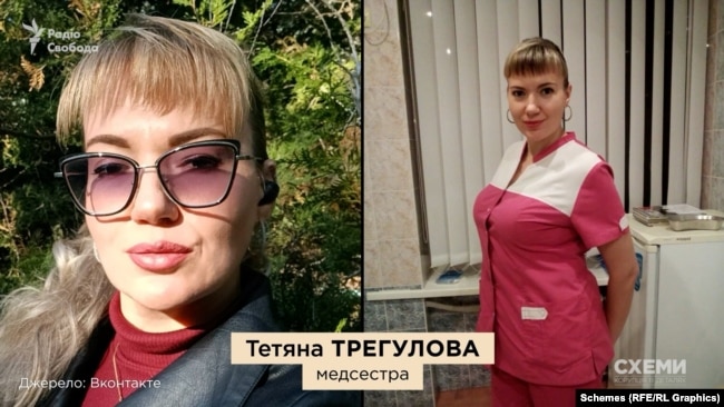 "Схемы" также смогли идентифицировать медсестру из отделения проктологии, которую упоминал в интервью Андрей Переверзев. Она первая обратила внимание военного на клеймо и сказала ему: "Не переживай. Приедешь домой – либо выведешь, либо наколкой забьешь". Военный опознал медсестру, когда журналисты показали ему фото. Это – 43-летняя Татьяна Трегулова, уроженка Донецка. Скорее всего, она работает в ДОКТМО с начала 2000-х.