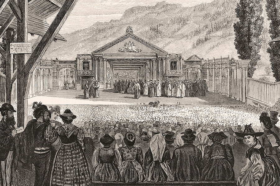 Раз в десять лет в деревне Обераммергау, где проживает 5 тыс. человек, ставят самый популярный на свете спектакль. Длится он пять с половиной часов, играет в нем половина населения деревни. Вот статистика нескольких последних сезонов: сто с гаком представлений, более 500 тыс. зрителей, приехавших со всего мира. В спектакле «Страсти Господни в Обераммергау», как его принято называть, рассказывается история Иисуса из Назарета. По легенде, впервые спектакль поставили в Обераммергау в 1634 году. Годом ранее много местных жителей умерло от бубонной чумы. Те, кто пережил мор, дали обет: если Господь отведет от них беду, они будут раз в десять лет играть в мистерии о страстях Господних. С тех пор город продолжает выполнять обет.