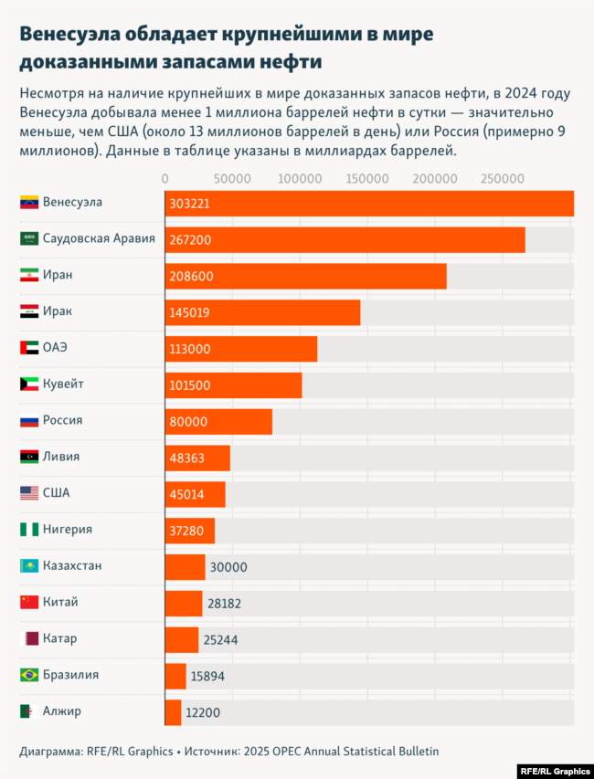 6 января Трамп заявил, что Каракас в ближайшее время передаст США до 50 миллионов баррелей нефти для последующей продажи: "С радостью сообщаю, что временные власти Венесуэлы передадут Соединенным Штатам Америки от 30 до 50 миллионов баррелей высококачественной, разрешенной к использованию нефти. Эта нефть будет продаваться по рыночной цене, и я, как президент Соединенных Штатов Америки, буду контролировать эти средства, чтобы гарантировать, что они будут использованы на благо народа Венесуэлы и Соединенных Штатов! Я поручил министру энергетики Крису Райту немедленно приступить к реализации этого плана. Нефть будет доставлена на судах-хранилищах непосредственно на разгрузочные причалы в Соединенных Штатах. Благодарю вас за внимание к этому вопросу!" – написал президент США в своей соцсети Truth.